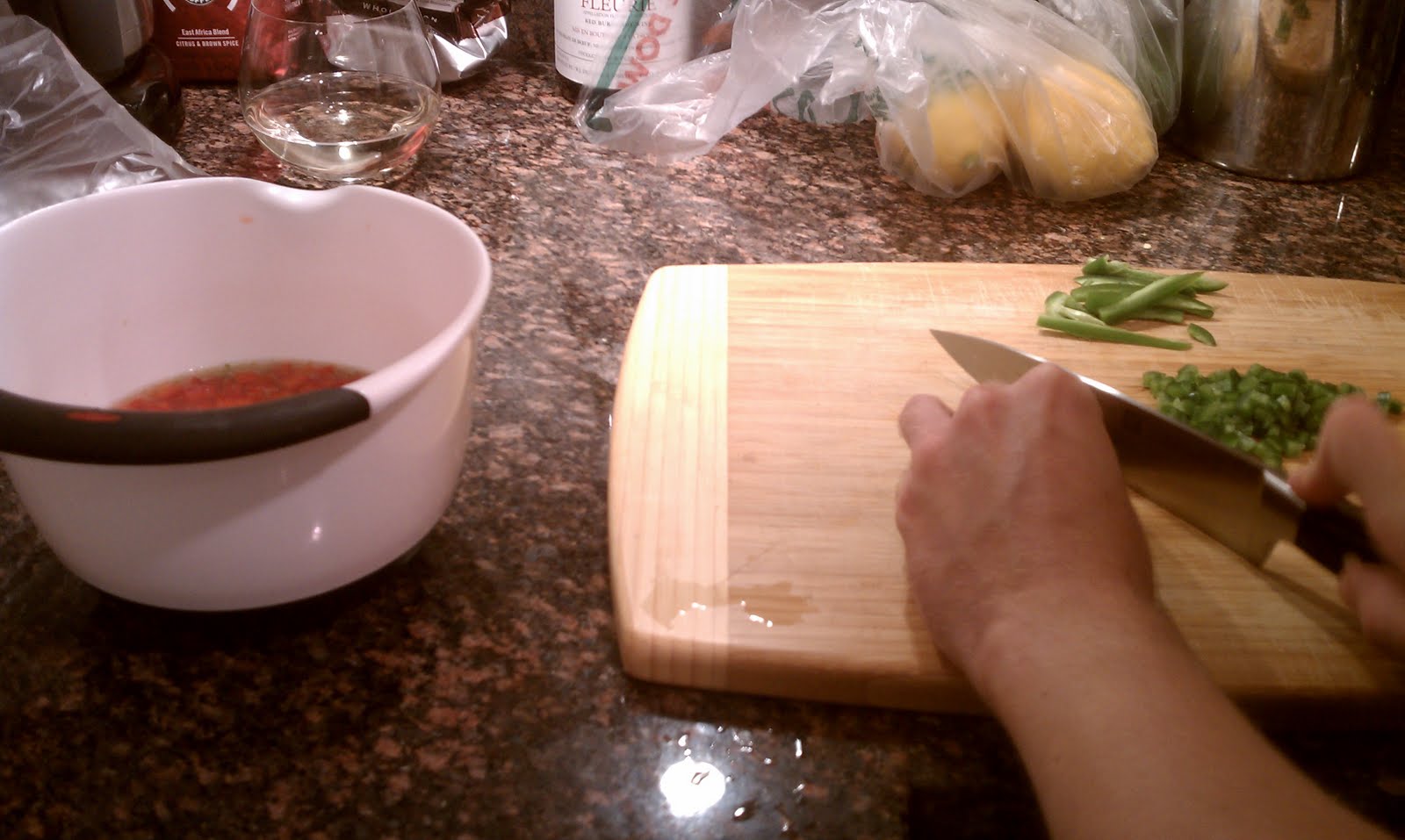 Be sure to pat all seafood dry with paper towels so that any moisture does not water down the marinade. To prep in advance, you can mix all the citrus marinade ingredients together (jalepeno, red pepper, garlic, lemon, lime, etc.) in one bowl, the cut seafood in another, and the added veggies minus avocado (scallions, cilantro, cherry tomatoes, oil, and sugar) in another. When it is time to start marinating, add the fish to the citrus. Add the avocado just before serving to prevent it from breaking down, turning brown, or making everything green. This will serve a generous 4 portions for a first course or a smaller 6 portions.
