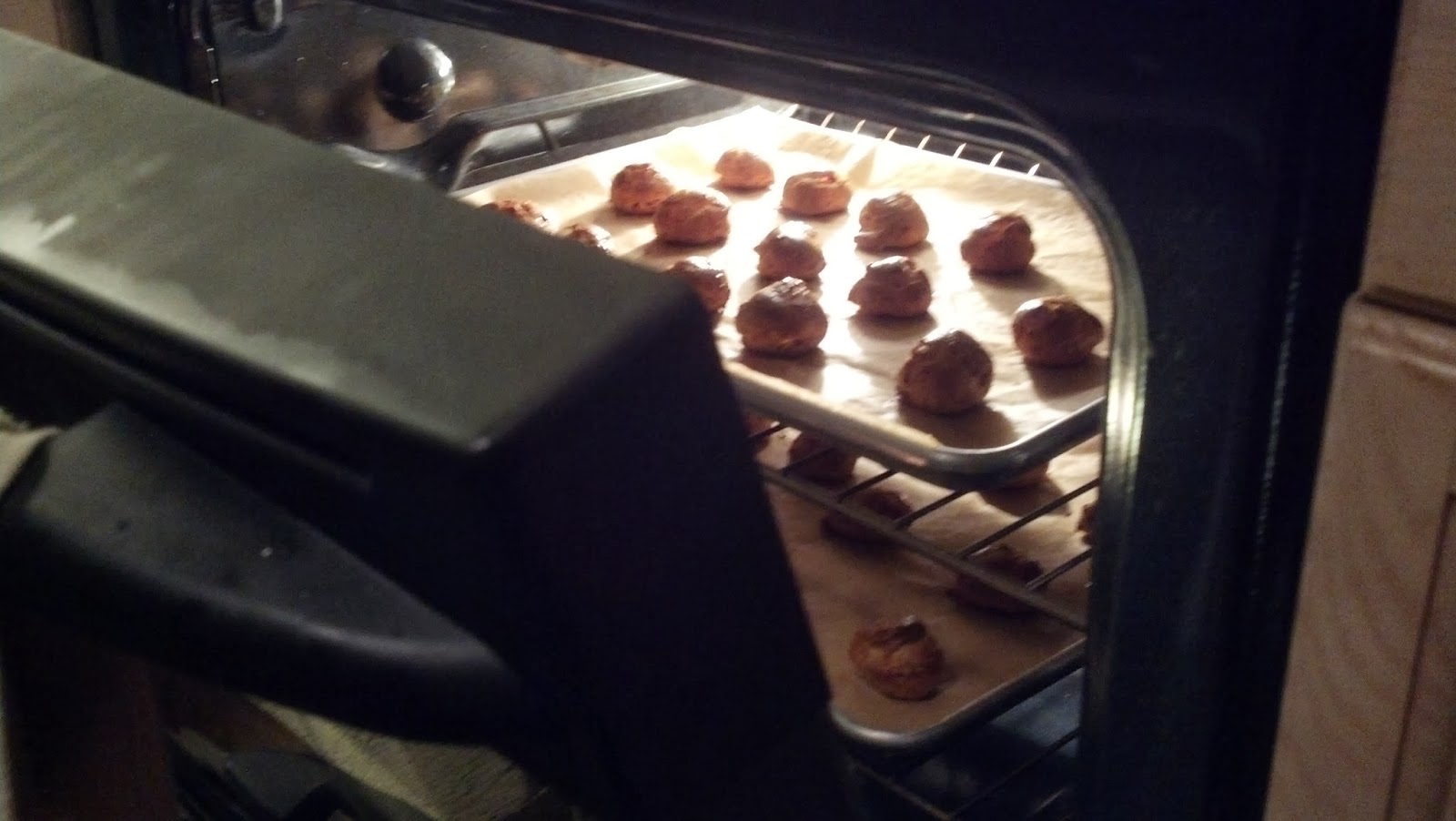 - Shut off oven, open oven door a few inches and leave gougères another 15 minutes before removing them. If you are serving them immediately, serve right away, they do not need any time to cool and are best hot.