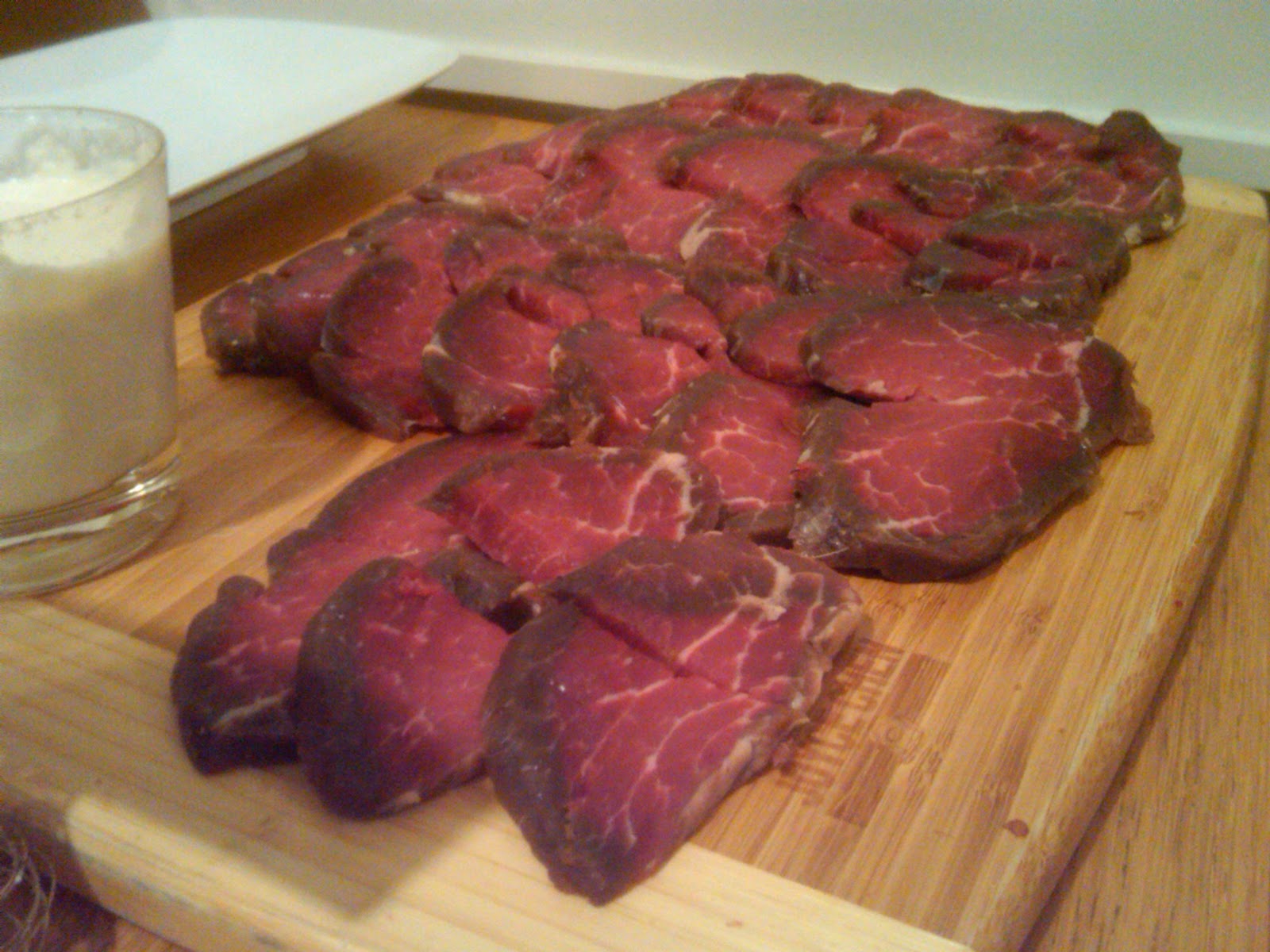 This recipe is based on Tom Colicchio's recipe for fresh bacon in "Think Like A Chef." The first few times I attempted Colicchio's recipe, I was always happy with the belly itself but couldn't quite nail the sauce. The original recipe finished the belly by browning it in a hot oven with the braising liquid still in the skillet. Something about putting that beautiful sauce in a hot oven ruined it every time. As a solution, I strain my braising liquid into a small sauce pan and gently reduce on the stove top until I get it just right. Meanwhile, I brown the belly with a little bit of extra stock, instead of my precious sauce.
