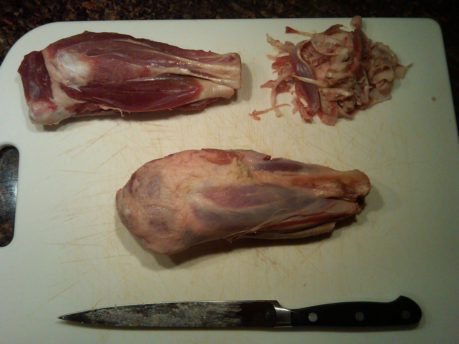 | - Adjust oven rack to middle position, and preheat oven to 300°F. Using a long, thin knife with a semi-flexible blade, trim as much external fat and silver skin from the lamb shanks as possible. Generously season the trimmed shanks with Kosher salt and freshly ground black pepper.
