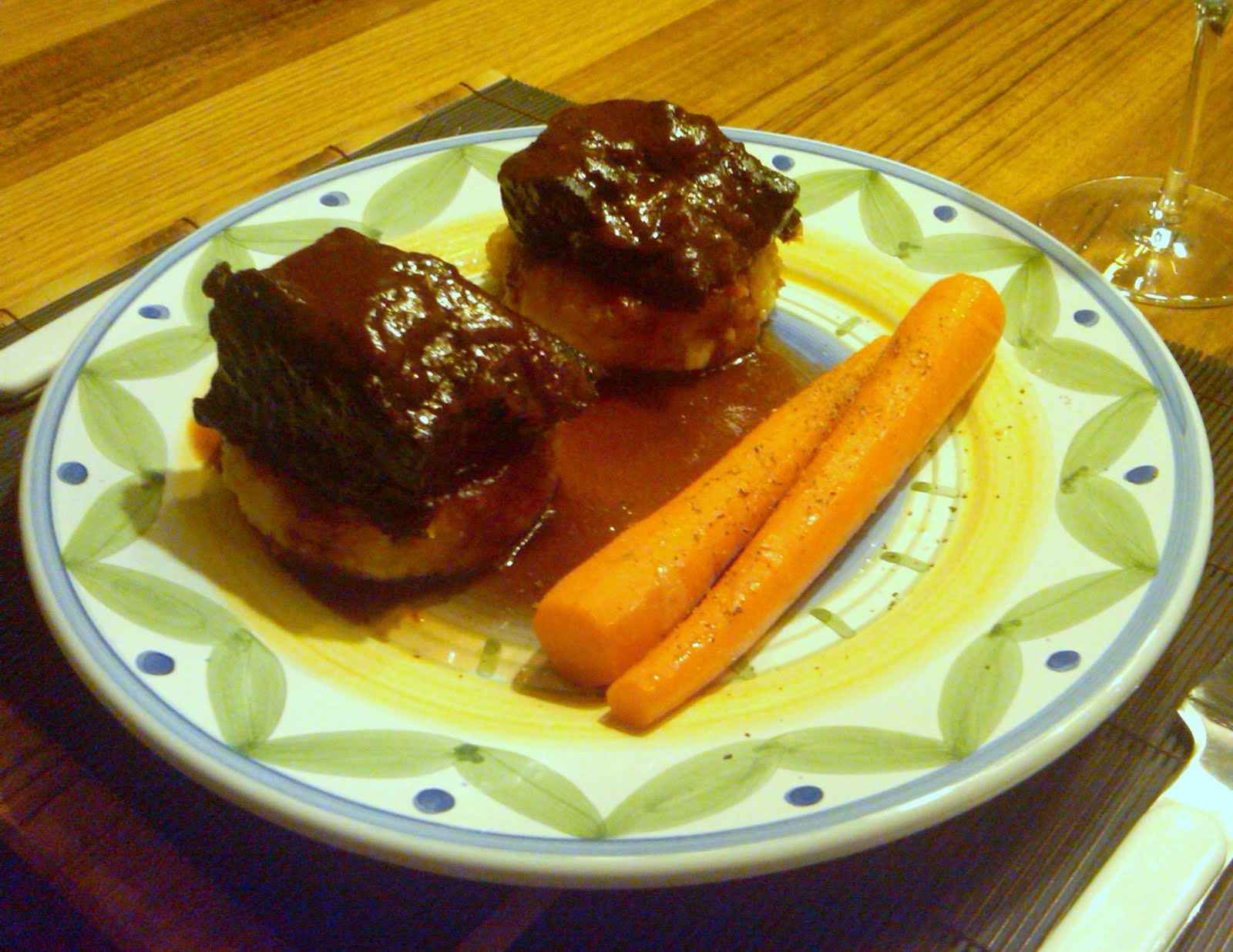 What really sets this recipe apart from your average short rib is the quality of the sauce. Smooth and rich, with complex flavor, the sauce is a thing of beauty. Syrah, which forms the base of the sauce, has plenty of depth and power to match up against the richness of the short rib. The star anise we include in the bouquet garni helps to highlight the sweet elements in the sauce. Finally, port and honey are added to the sauce at end to temper any harshness in the wine.