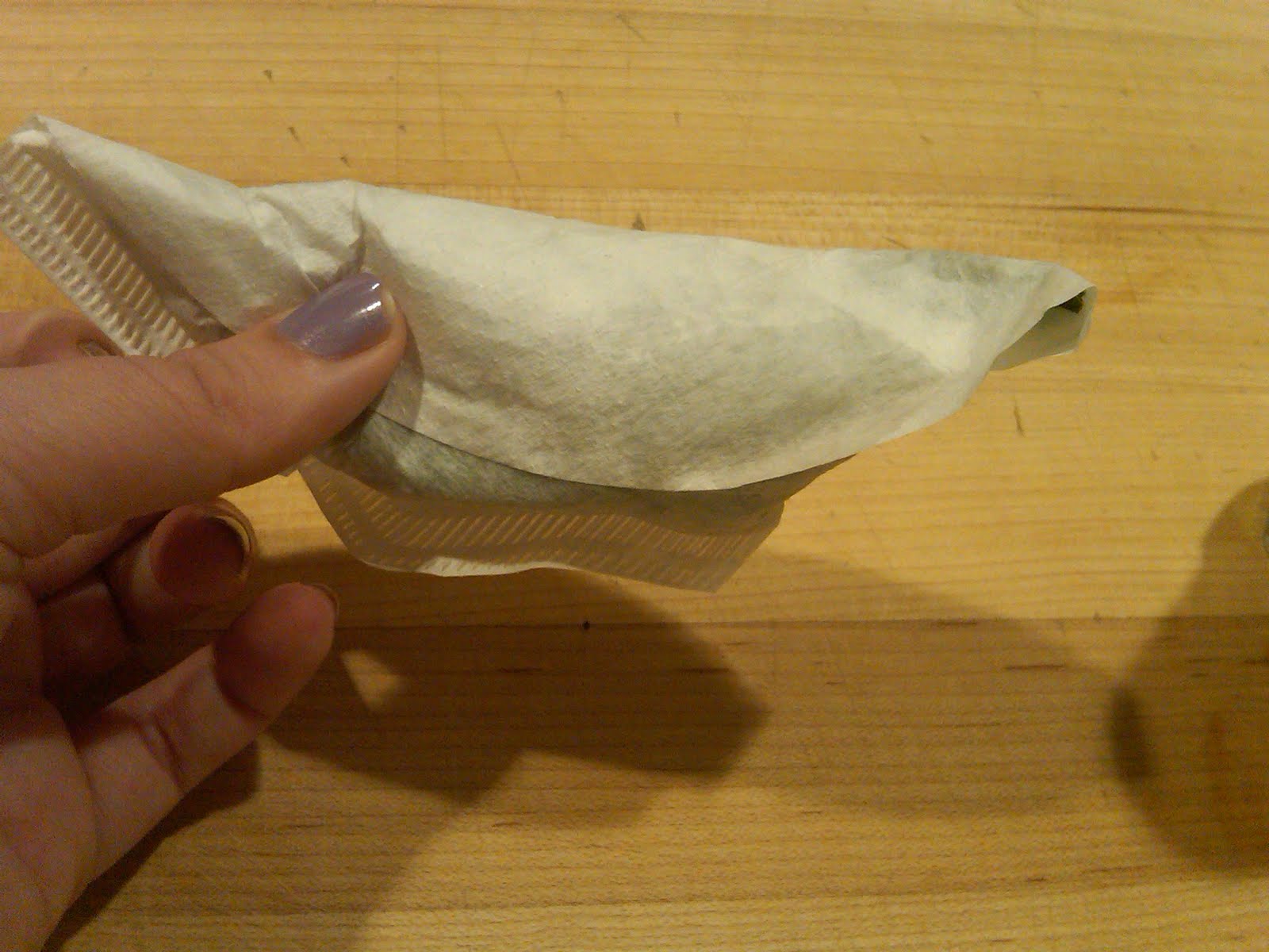 4. Place the parsley sprigs, thyme, bay leaves, peppercorns and cloves in a small coffee filter to make a bouquet garni (see pictures). Fold the filter over itself and tie shut with a piece of kitchen twine.