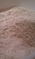 4. Sift dry ingredients together in separate bowl (flour, cloves, nutmeg, cinnamon, baking soda, baking powder, and salt) and add to pumpkin blend.