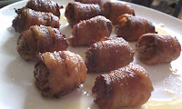 This year, we added a spicy nut mix, homemade liver mousse, and a second vegetarian option of spicy sweet potato (a recipe I made up and am still working on perfecting). We also made pignoli cookies, which I had for the first time during our recent Tuscany trip. I insisted on trying to replicate them. These aren't quite as good as the ones I had in Italy but were an excellent first attempt and stand up on their own. In addition, we had our old favorites. You just can't go wrong with this beef recipe, or with bacon wrapped dates that matter. There's bacon. There's date. It's perfect.